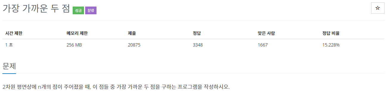 첫째 줄에 자연수 n(2 ≤ n ≤ 100,000)이 주어진다. 다음 n개의 줄에는 차례로 각 점의 x, y좌표가 주어진다. 각각의 좌표는 절댓값이 10,000을 넘지 않는 정수이다. 같은 점이 여러 번 주어질 수도 있��
